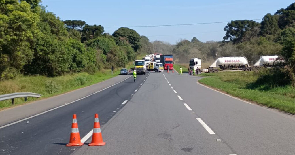 Acidente na BR-277 no km 124 deixa pista sentido Curitiba interditada