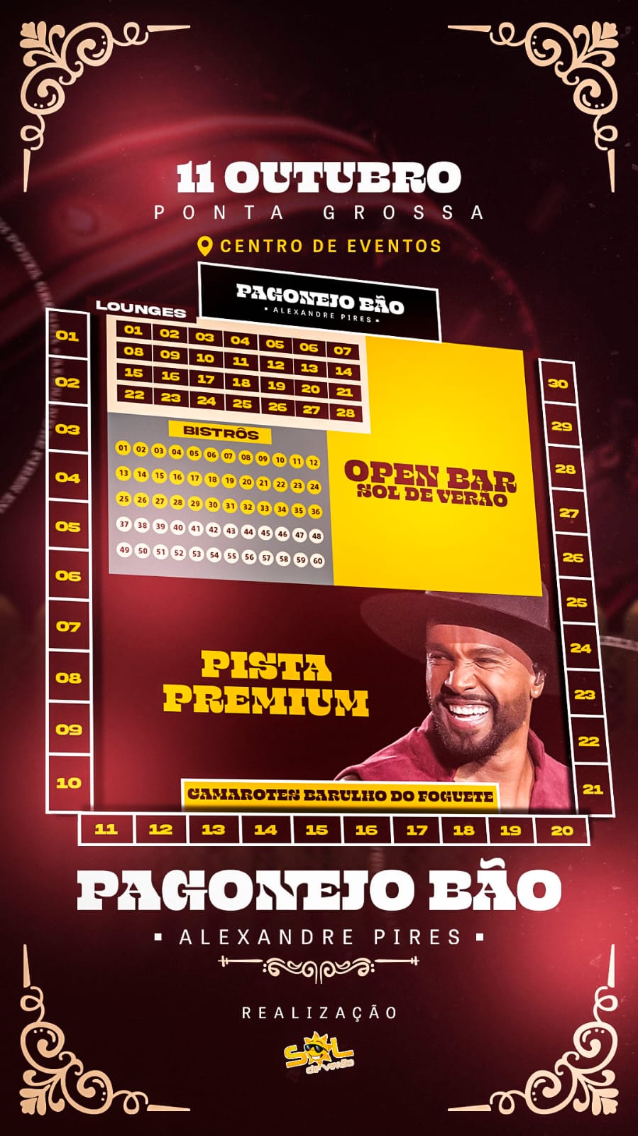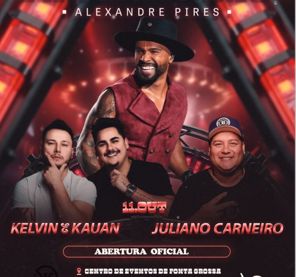 O cantor Alexandre Pires, um dos maiores nomes da música latina, se apresenta em Ponta Grossa no dia 11 de outubro, com o show especial “Pagonejo Bão”, que mistura o pagode com sucessos do sertanejo. A performance acontece no Centro de Eventos de Ponta Grossa.