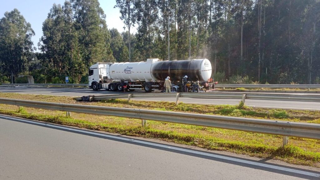 Na manhã desta quinta (25), o Corpo de Bombeiros foi acionado para conter as chamas de um caminhão tanque, mais especificamente em um de seus rodados, a situação foi registrada em torno do km 423 da BR-376.