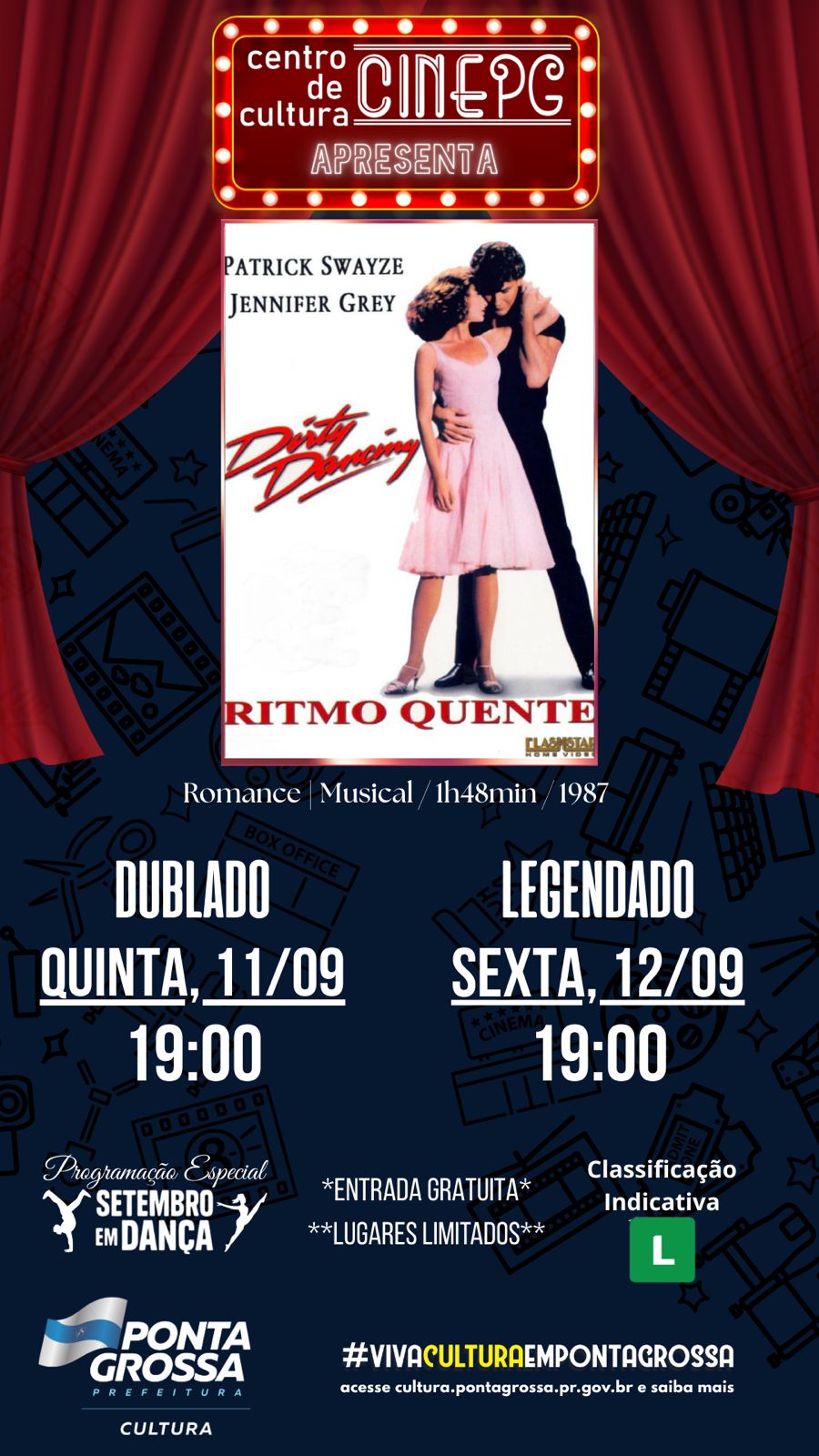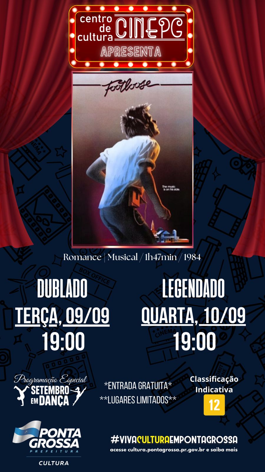O CinePG prossegue nesta semana com a programação especial voltada ao universo da dança, em conexão com o Festival Setembro em Dança, que começa no próximo dia 16. Dentro dessa proposta, serão exibidos mais dois romances musicais dos anos 1980 que marcaram época: Footloose – Ritmo Quente (1984) e Dirty Dancing (1987).