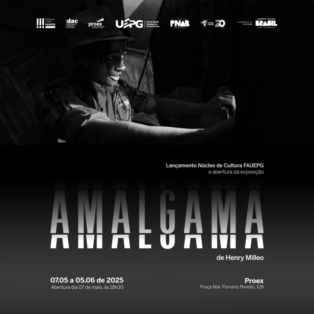 A exposição “Amálgama: crônicas fotográficas de Henry Milleo” é uma promoção do Núcleo de Cultura Fauepg, Diretoria de Assuntos Culturais (DAC), Proex-UEPG, UEPG, Política Nacional PNAB Aldir Blanc, Cultura Viva e Ministério da Cultura.