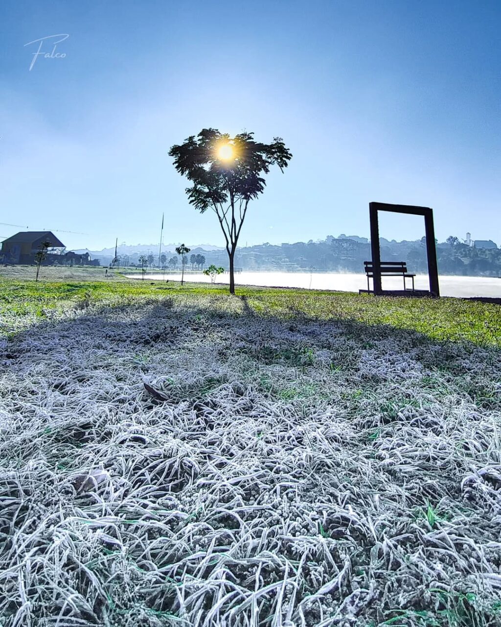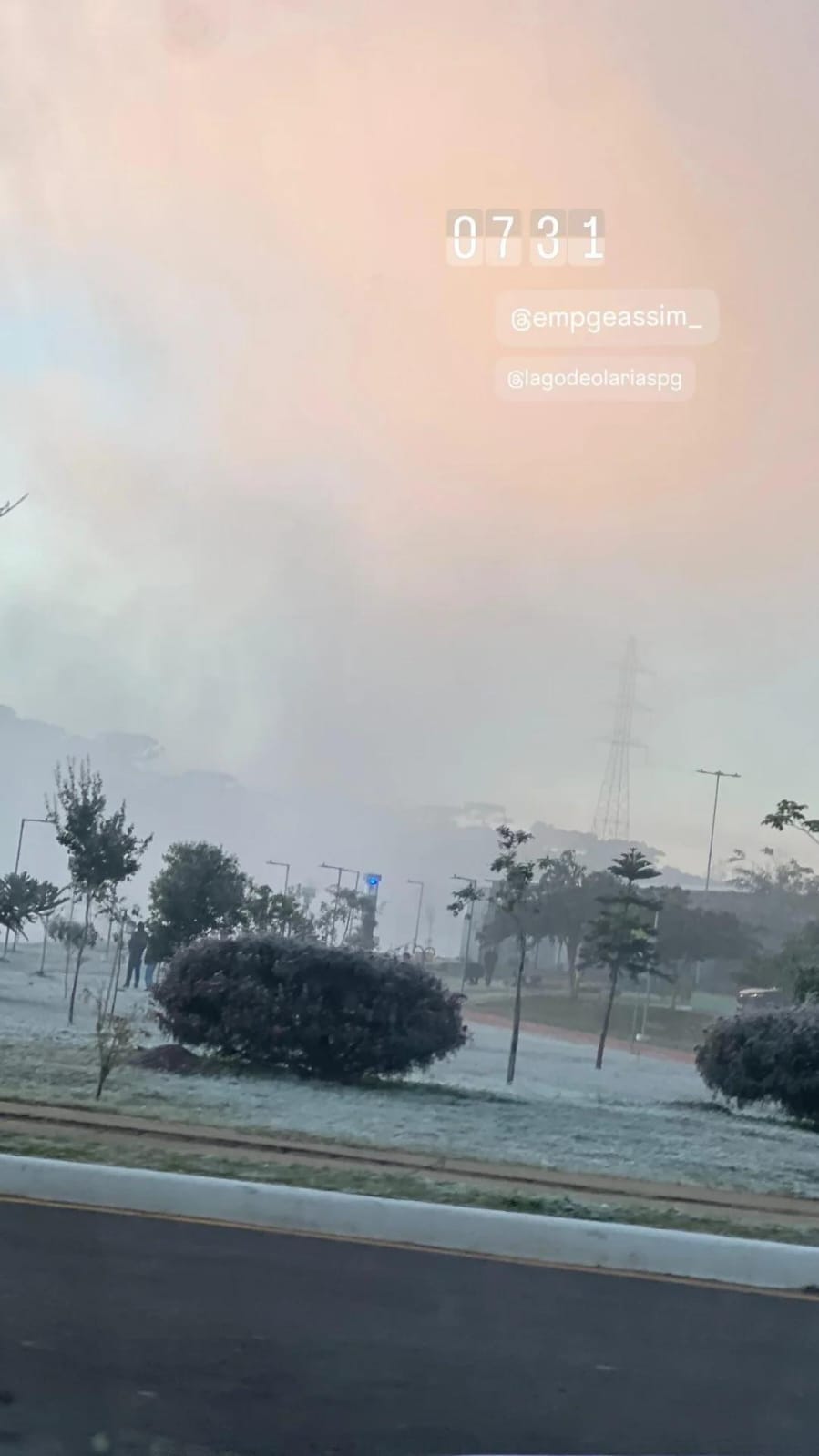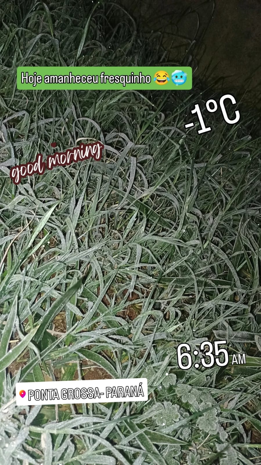 Com o frio intenso, uma forte geada cobriu a cidade e transformou a paisagem logo nas primeiras horas do dia. Seguidores do Portal Em PG é Assim enviaram fotos registrando o fenômeno em diferentes regiões de Ponta Grossa.