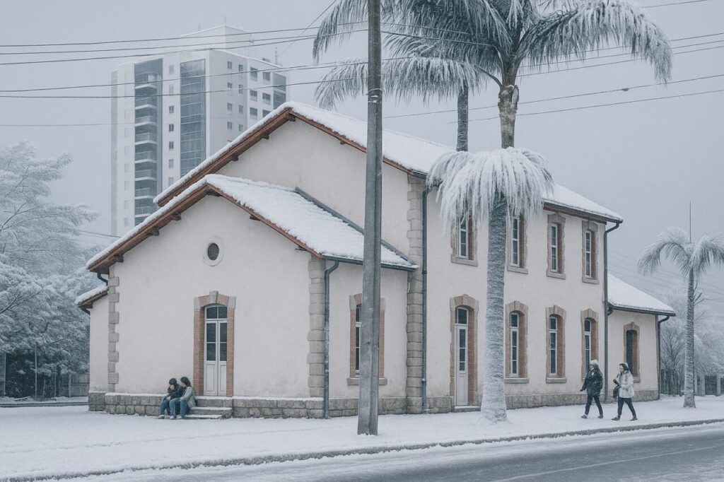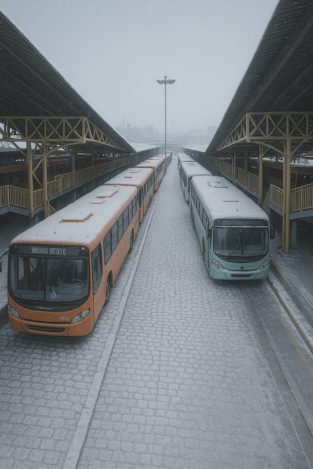 Então, imagine: o Terminal Central, a Estação Saudade, a Maria Fumaça, a Catedral Sant’Anna, o calçadão, a Vila Velha — todos completamente encobertos por uma camada bem branquinha de neve! Um frio de partir os “beiço”! Será que um dia os ponta-grossenses vão presenciar um momento desse? Enquanto isso não acontece, confira as imagens postadas pelo Portal Em PG É Assim.