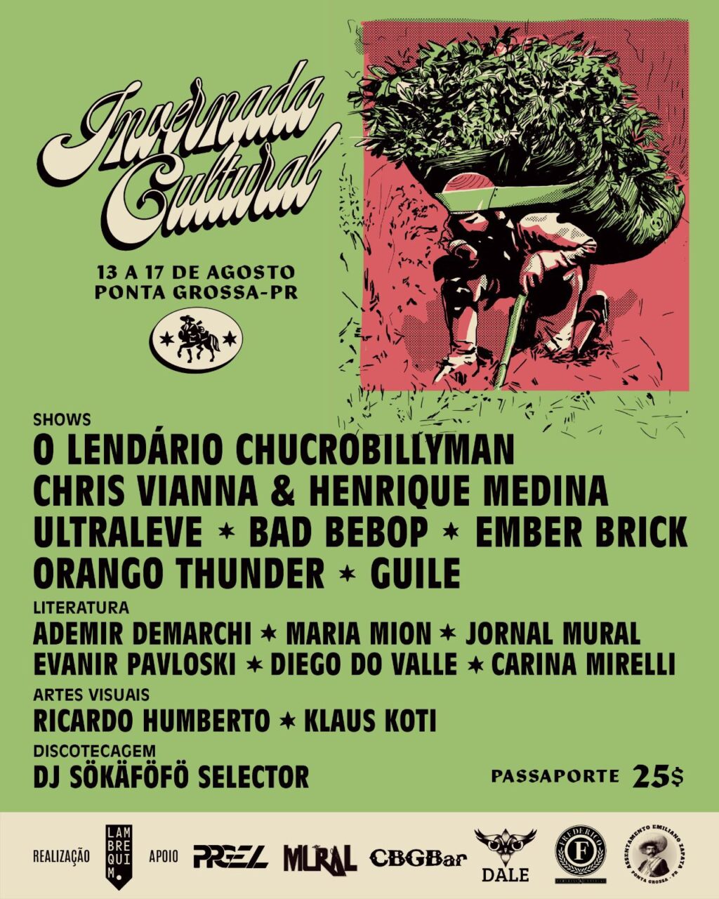 A Invernada Cultural conta com apoio de parceiros como PPGEL, CBGBAR, Jornal Mural, Dale, Frederico Cervejas & Cervejas, HJ Comunicação e o Assentamento Emiliano Zapata. O passaporte para as atrações pagas custa R$ 25.