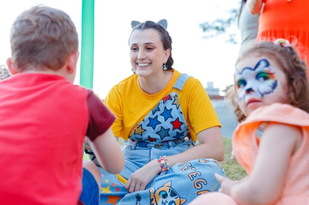 Caroline fala sobre a missão da Tetêga: proporcionar momentos especiais para famílias, unir pessoas, estimular a comunicação e socialização das crianças, desenvolver habilidades cognitivas e motoras, ajudar na regulação emocional e no bem-estar, além de fortalecer autoestima e autonomia. A recreação, segundo a convidada, é responsável pela diversão das crianças e pela tranquilidade dos pais.