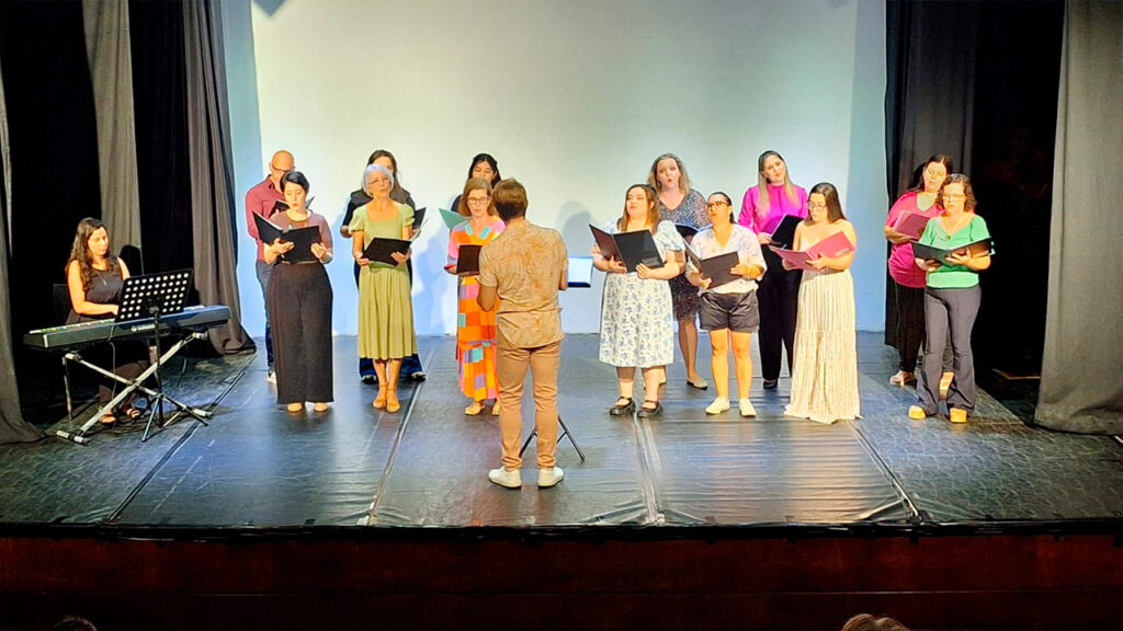 A programação reúne três grupos vocais formados no âmbito do projeto. O Coral 50+ apresenta o concerto “Quem Vai Cantando Não Vai Sozinho“, com repertório que inclui obras de Rita Lee, Édith Piaf, músicas brasileiras, francesas, pop e de outros idiomas. O Coral De Todos Juntos traz o concerto “Minha Voz, Minha Vida“, com canções que abordam a trajetória e o ofício do artista. Já o Coro Cênico apresenta o espetáculo “Carta aos Amores”, composto por músicas que tratam de diferentes formas de amor.