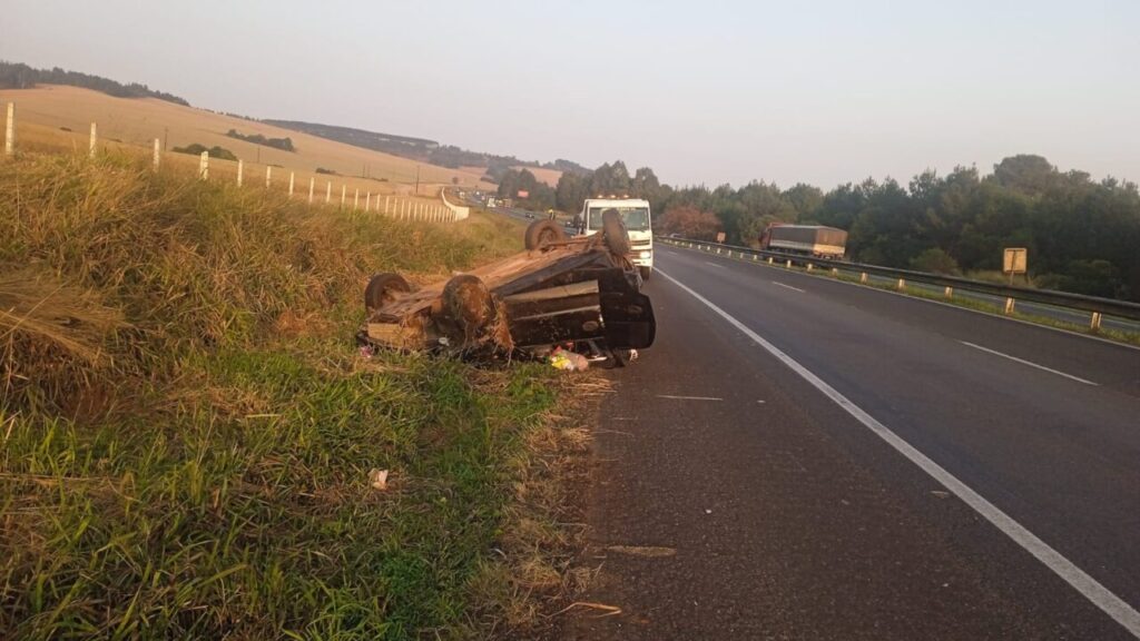 Um acidente de trânsito envolvendo um veículo aconteceu por volta das 07:15 desta manhã no km 519 da BR-376, em Ponta Grossa. O sinistro envolveu a saída de pista e capotamento do veículo, que transportava cinco ocupantes.