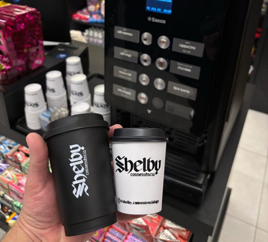 Além da já conhecida área de tabacaria e da mercearia completa, a nova unidade traz uma máquina de café com seis opções especiais — cappuccino, mocha, chocolate quente, expresso, café longo e pingado — servidos em copos normais ou nos copos personalizados da Shelby, que estão à venda. Para os amantes de chopp, são quatro opções direto do barril, em parceria com a Oak Bier: pilsen, ipa, chopp de vinho e ipa mango.