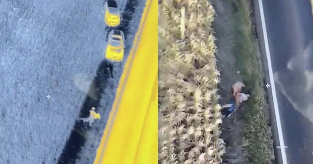 Embora o suspeito tenha desaparecido no milharal, a PMPR contou com o apoio de um helicóptero do Batalhão de Polícia Militar de Operações Aéreas (BPMOA), que utilizou uma câmera termal para localizá-lo. O indivíduo foi encontrado deitado entre os milhos e recebeu a ordem para se render por meio dos alto-falantes.