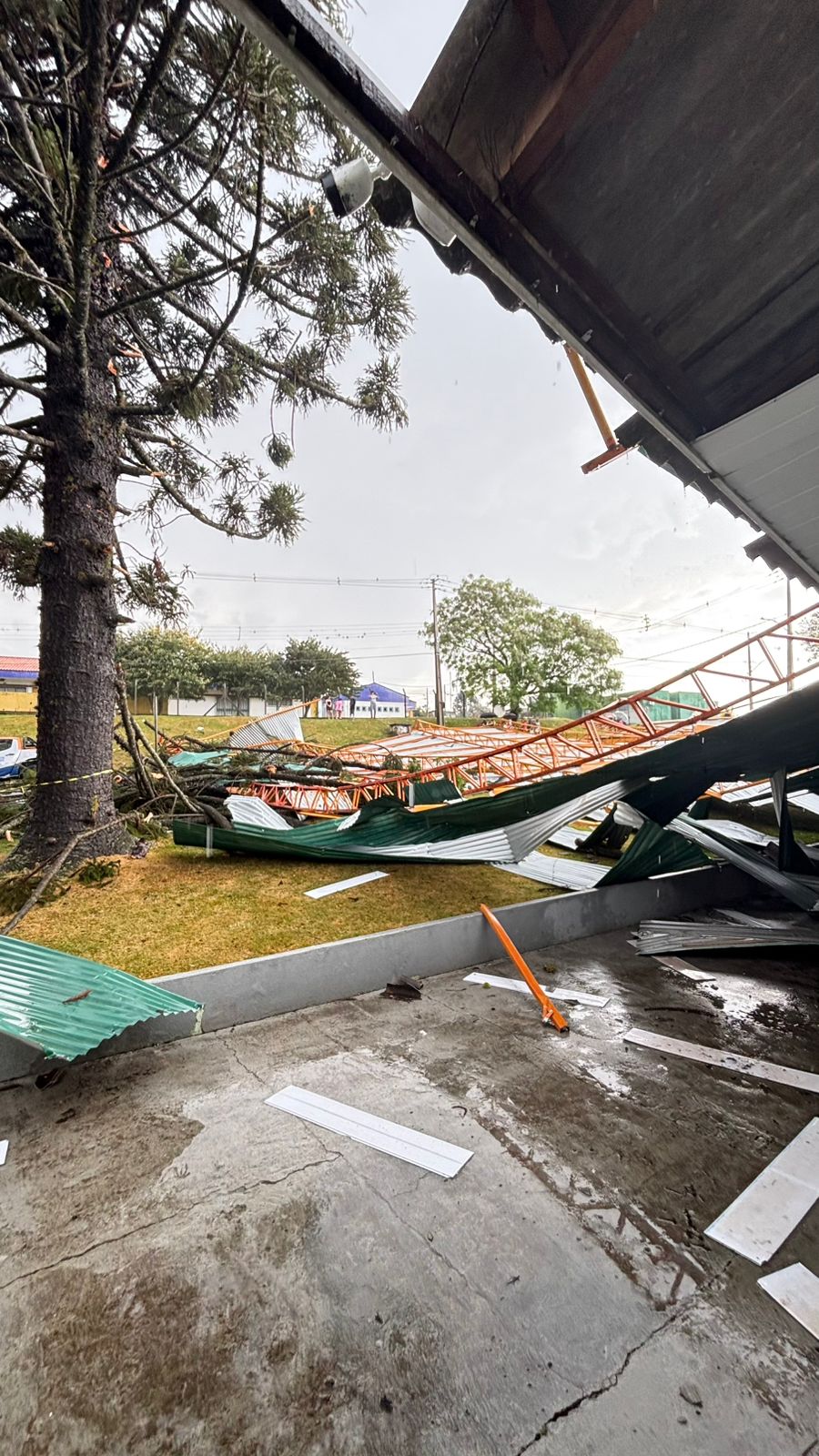 Além dos destelhamentos, também foram registradas quedas de árvores e mais de 30 cruzamentos semaforizados ficaram inoperantes.